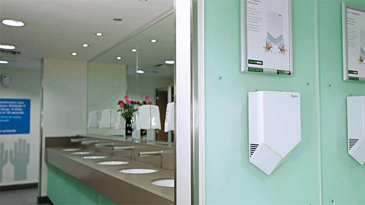 Dyson Airblade™ hand dryers have HEPA filters installed as standard. So hands are dried with cleaner air, not dirty air.