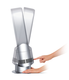 Draws in surrounding air and amplifies it. No chopping blades means no buffetting.